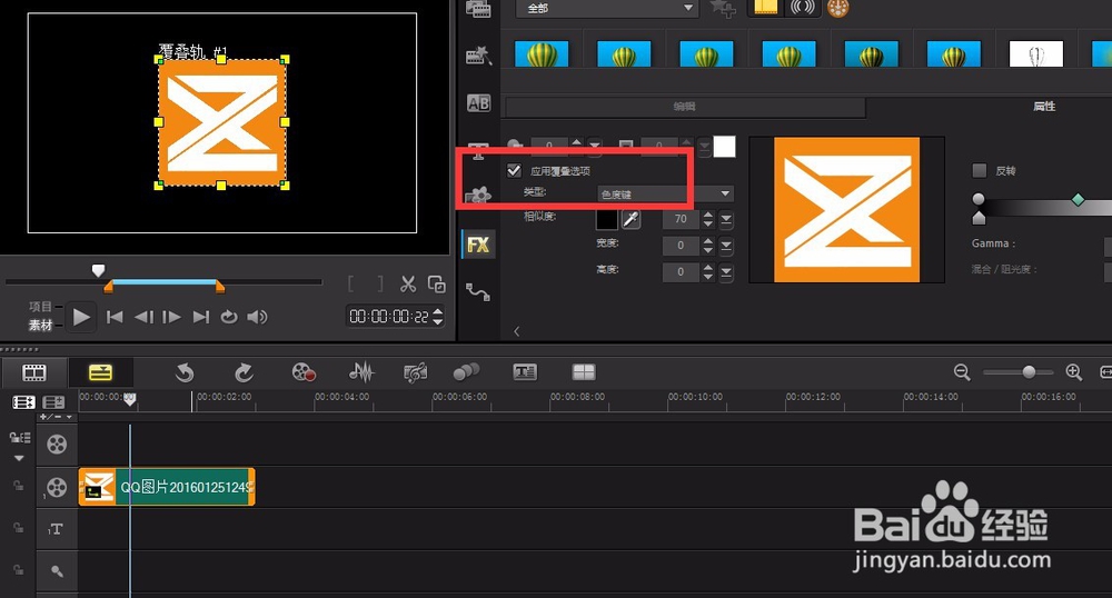 3、选择遮罩和色度键,挂钩选择应用覆叠选项选,这个时候我们可以选择一个。