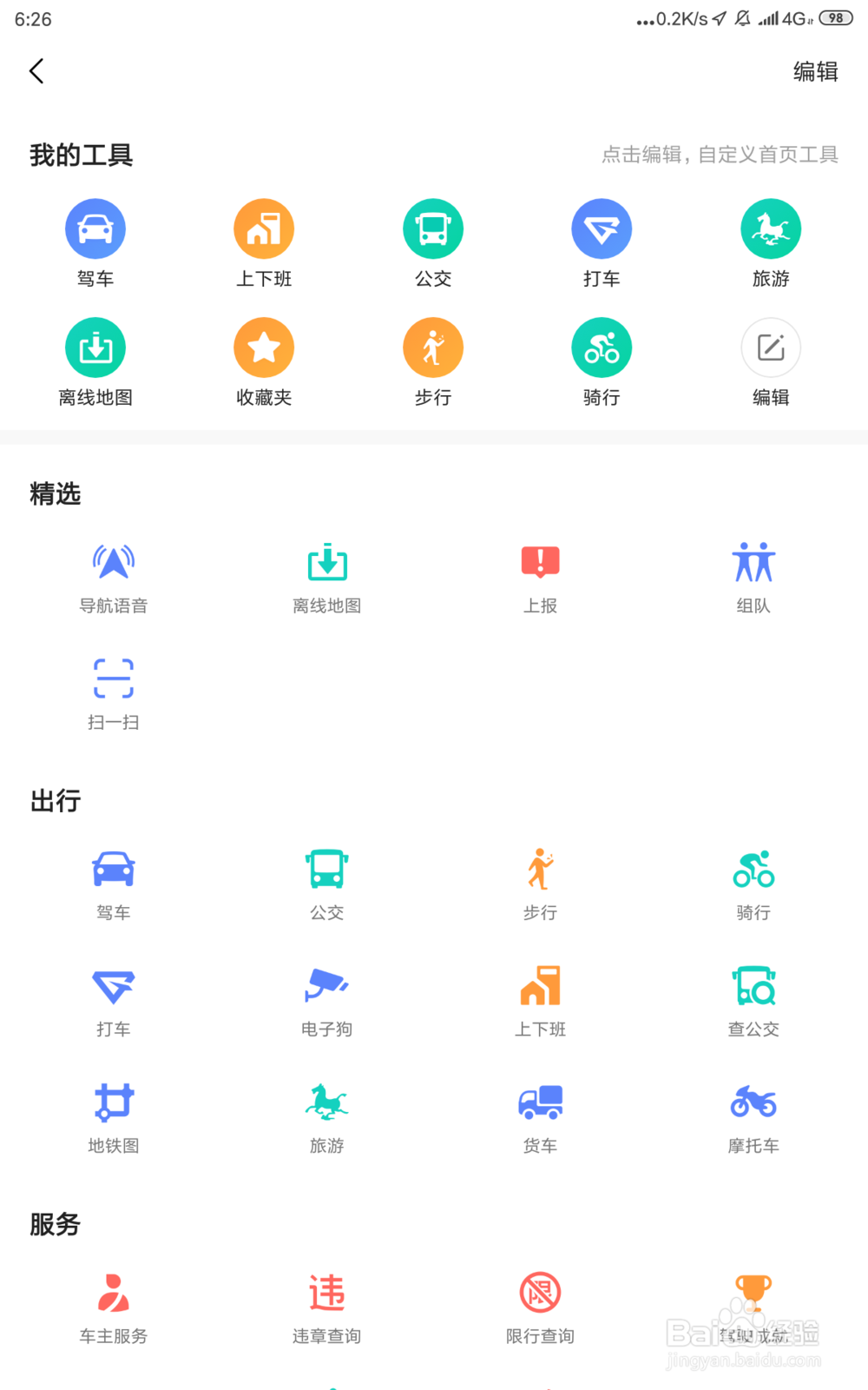 1、进入地图首页之后,从下方往上发,滑动打开更多功能