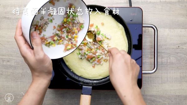 17、待表面半凝固状态放入食材。