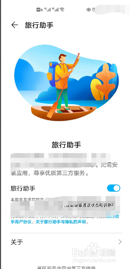 4、返回到辅助功能界面,然后选择旅行助手,打开开关,可以即时获取旅行相关信息。
