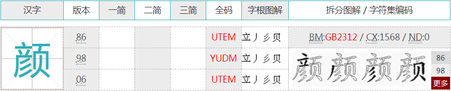 “颜”字用五笔打法是:UTEM,五笔拆字根如下: