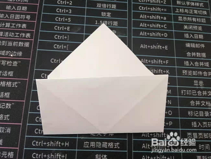 5、把左右两边的角向后折叠,上面的角向下折叠。