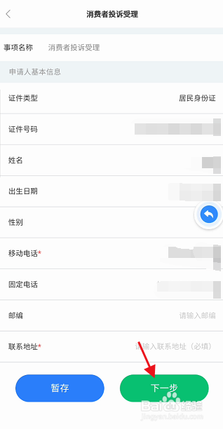 6、进入消费者投诉受理,查看相关信息,点击下一步进行查看