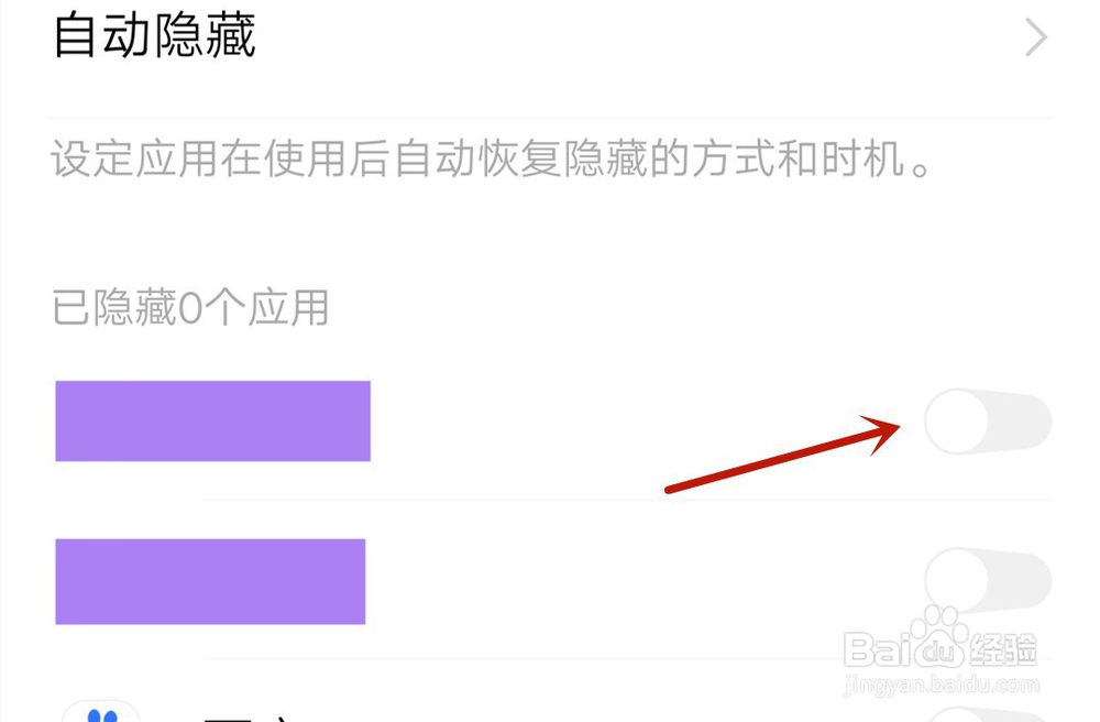 7、然后可以看到手机中的应用,下面可以显示全部应用,点击要隐藏的应有,后面的按钮一下。