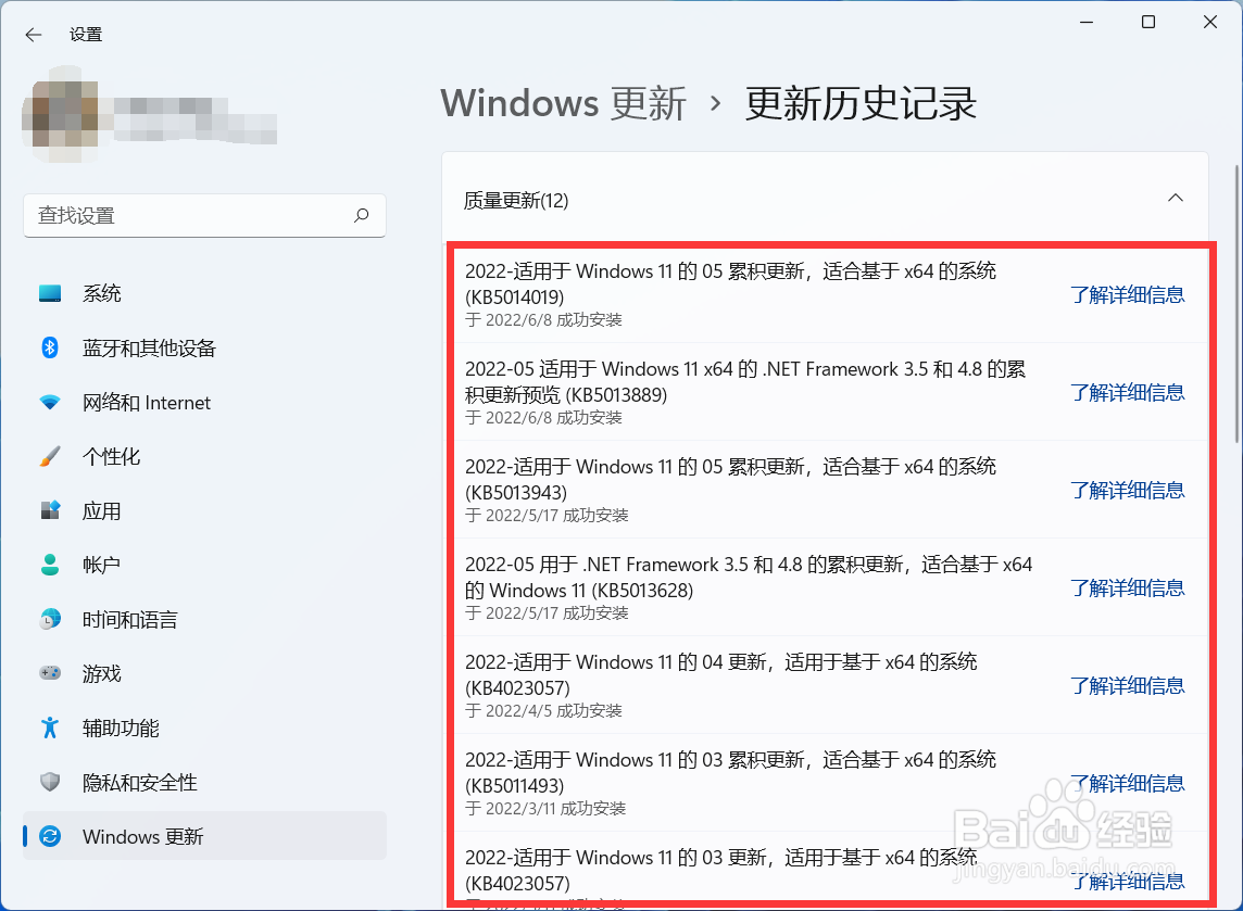 4、在打开的页面中,就可以看到所有的历史更新记录了。