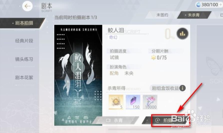 2、进入到【剧本拍摄】页面后选中要拍摄的剧本,点击【拍摄】功能。