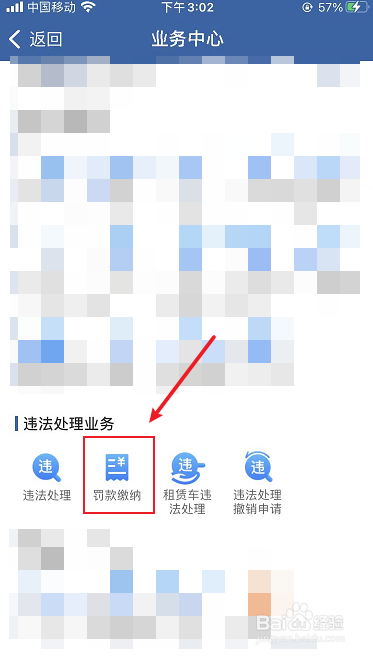 2、2.然后第二步我们点击界面中的“罚款缴纳”业务。