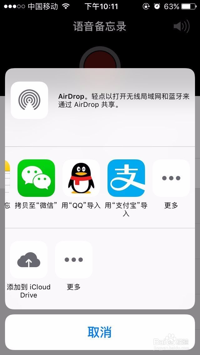 3、点开分享菜单,从里面选取要导出文件的应用,这里我用的是QQ,因为方便!!