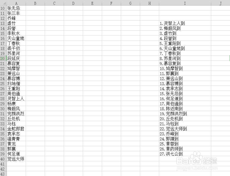 1、首先,我们以金庸小说人物名字为模型,建立一个班集体的EXCEL表