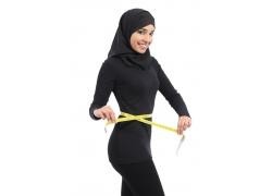 3、腰围:测量腰围是,尺子贴着身体,在肚脐眼位置上方3cm水平位置围上一圈。