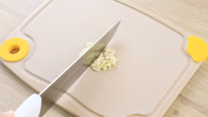 5、碗中倒入蒜末,蜂蜜,柠檬汁,生抽,6克玉米淀粉和100毫升清水,用勺子搅拌均匀。