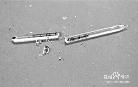 2、情形二:水银温度计破损,甚至水银泄露出来。水银具有挥发性,吸入少量水银会对人的神经系统造成损伤。如果手不小心碰到水银,要先用抹布抹干净,在用碘酒洗,最后水冲洗。接下来详细讲一讲处理碎落水银温度计的正确方法。