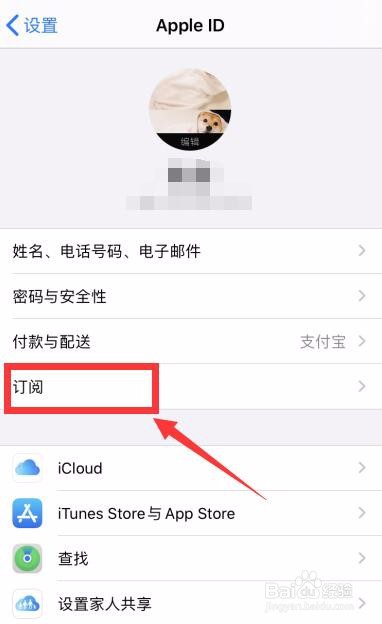 2、如下图所示,我们进入Apple ID页面,找到下图框选的【订阅】选项。