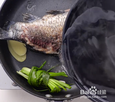 2、起锅烧油,放入鲫鱼,用中火煎至鲫鱼的两个表面金黄