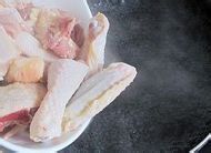 4、煮开后把鸡肉再搅拌清洗掉浮末;