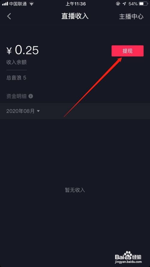 5、第五步,进入后,点击“提现”即可,点击“资金明细”可以查看收入明细,需要注意的是必须满1元才可以提现。