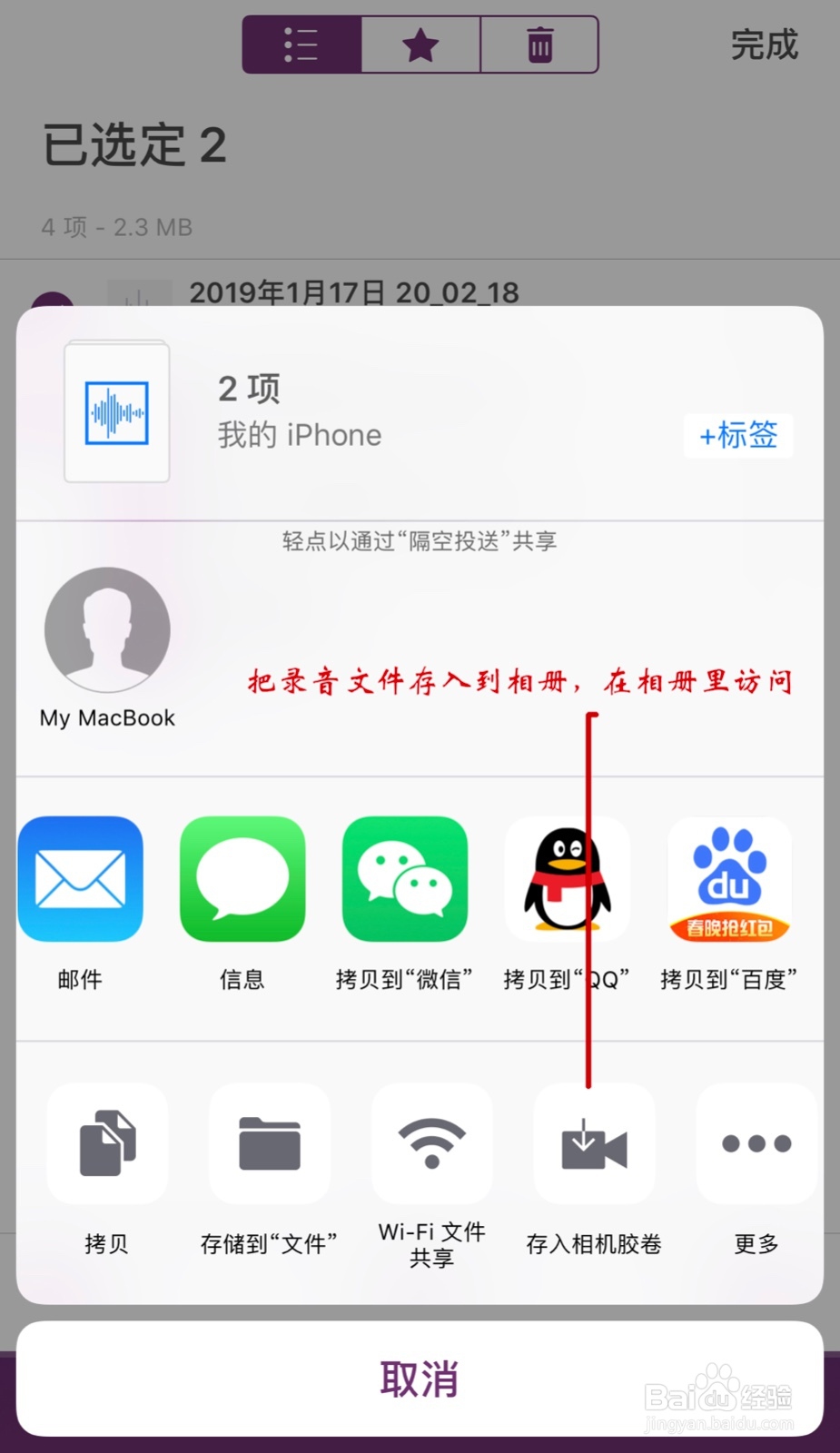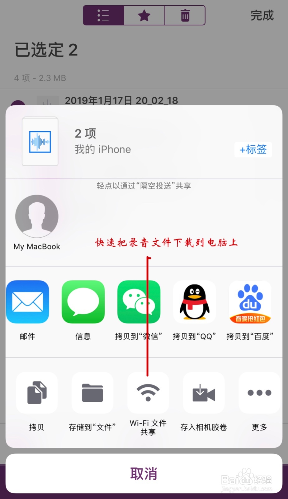 5、第三种导出方式:把文件存储到iCloud云盘,在电脑中打开云盘,即可访问录音文件并下载到电脑中。