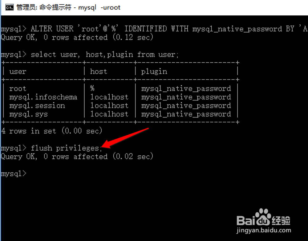 alter user 'root'@'%' identified with mysql_native_password by 'Admin@123';