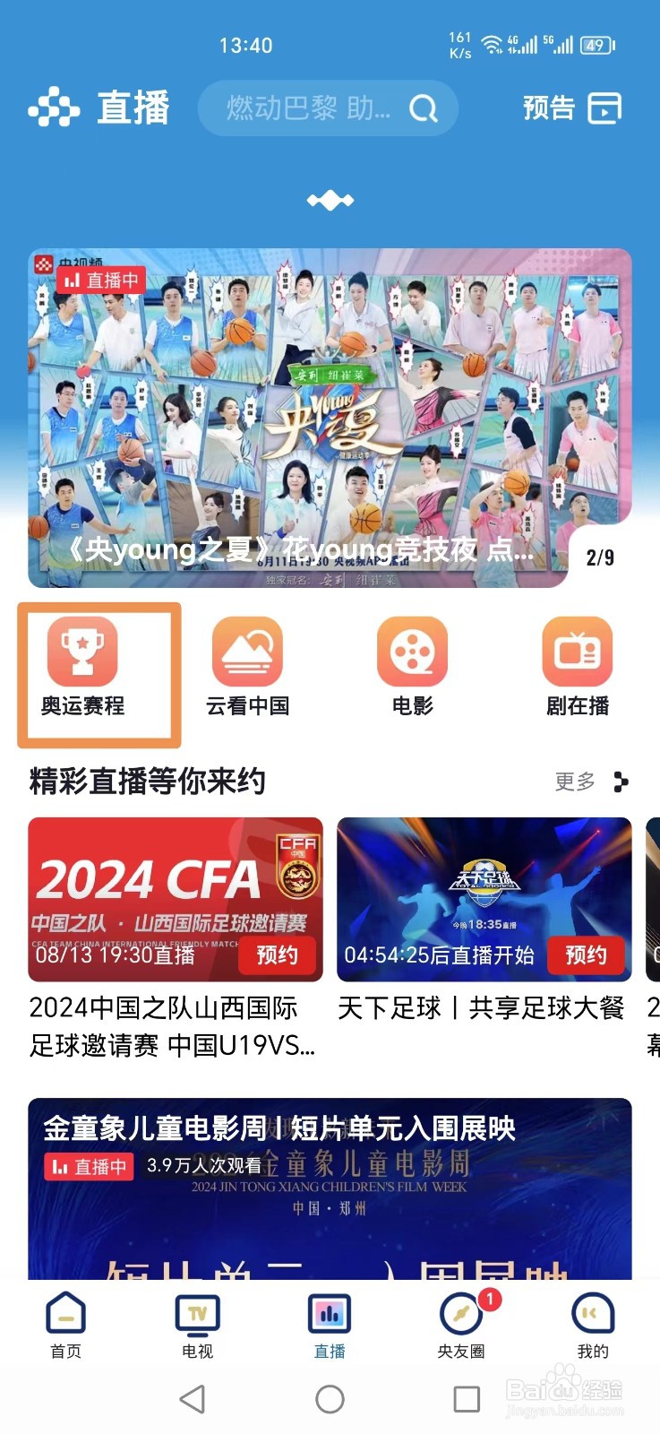 央视频APP怎么看巴黎奥运网球比赛直播回放