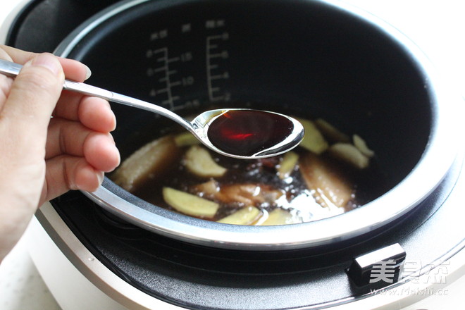 7、加入1勺白酒,2勺生抽,1/3老抽