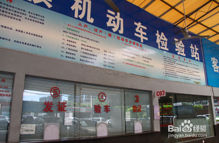 5、找到检测登录窗口,所有材料留在该窗口处。可以开车去检测车间了。