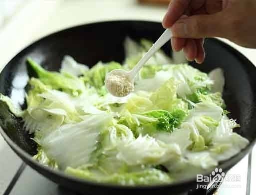 6、翻炒均匀,至芡汁浓郁并裹匀白菜即可出锅