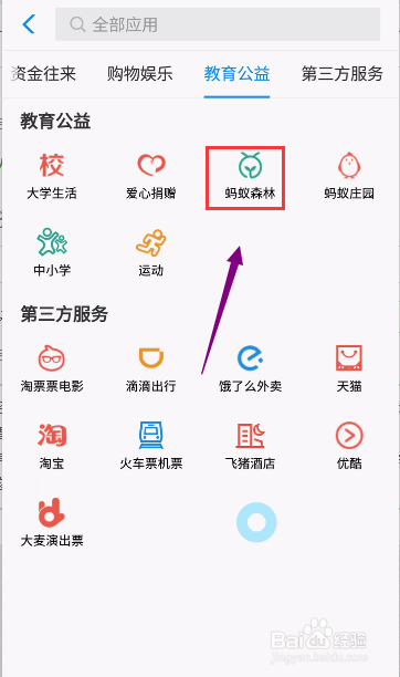 4、进入蚂蚁森林,点击左上角的公益账单,如下图所示