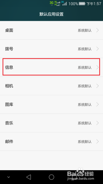 c)检查当前短信的默认应用是否为原生短信,如果不是请将默认短信应用设置为原生短信: