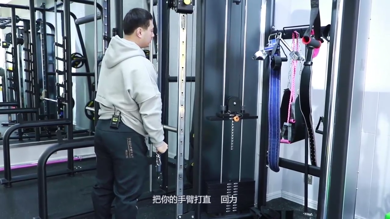1、把龙门架的绳索调在与适合身高的位置。