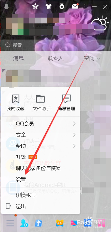 2、进入到qq主界面之后,我们点击主界面左下角的菜单栏。
