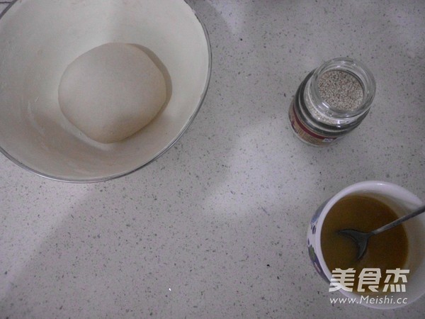 5、这个是静置好的面团炒熟的麻仁和油酥。