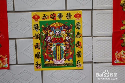 2、再在正屋内墙和玉皇大帝像相对的位置张贴财神画像,也要摆上祭品。厨房张贴新的灶王爷画像,摆放祭品。