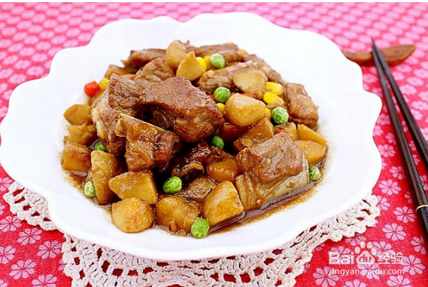 7、家常红烧排骨是一道家常菜,主要原材料有肋排或小排,配料有生姜、葱、盐、糖、酱油、料酒、味精等,具有延缓衰老,益精补血等功效。
