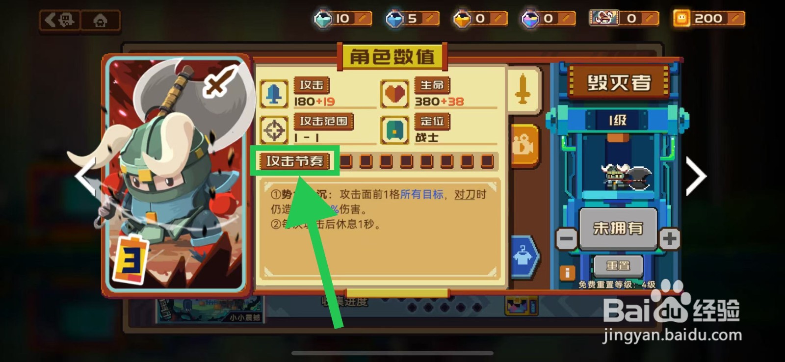 3、最后,在毁灭者页面,点击【攻击节奏】即可。