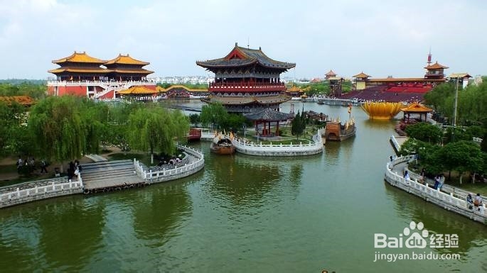 6、临水大殿是由宣和殿、宣德殿两殿连接而成,两殿造型巍峨庄重。这是时俯瞰清明上河园的绝佳之处。各处景观层次分明,尤其是池中诸般美景尽收眼底。
