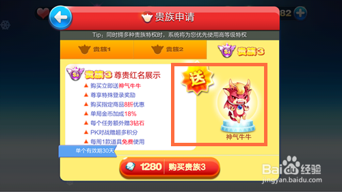 3、然后购买贵族3,就可以送你神气牛牛了,如下图