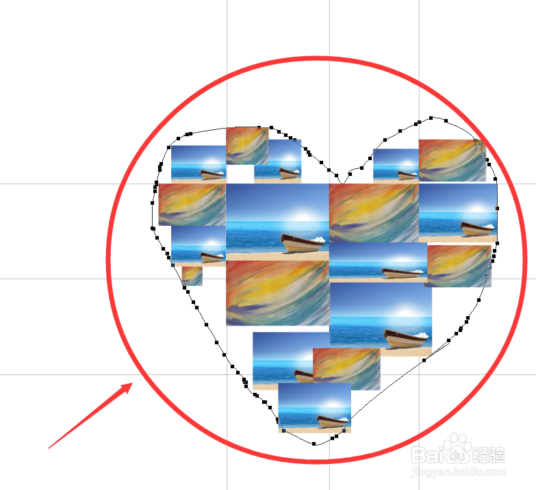 7、在拖入图片时,我们最好交叉排放,让相邻的两个图片都不一样,这样能更好地体现心形图片的层次感,如下图所示,小编已经随便做好了图片。