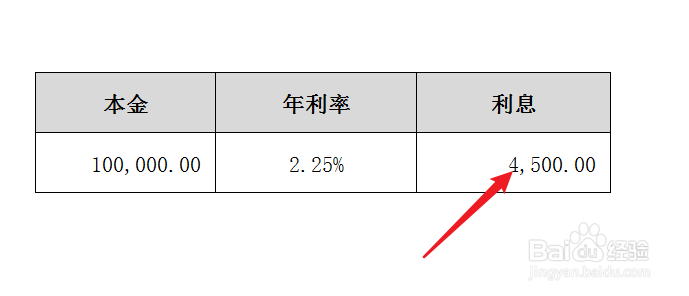 3、定期存款到期时的利息怎么计算呢?在利息单元格输入公式“=B124*G124*2”,计算出到期利息是4500元。