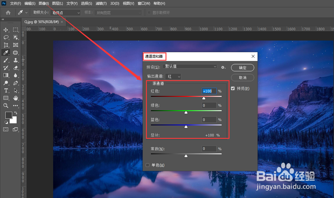 Adobe Photoshop 2021怎样设置图片通道混和器
