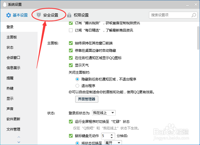 4、然后点击上方的安全设置栏。