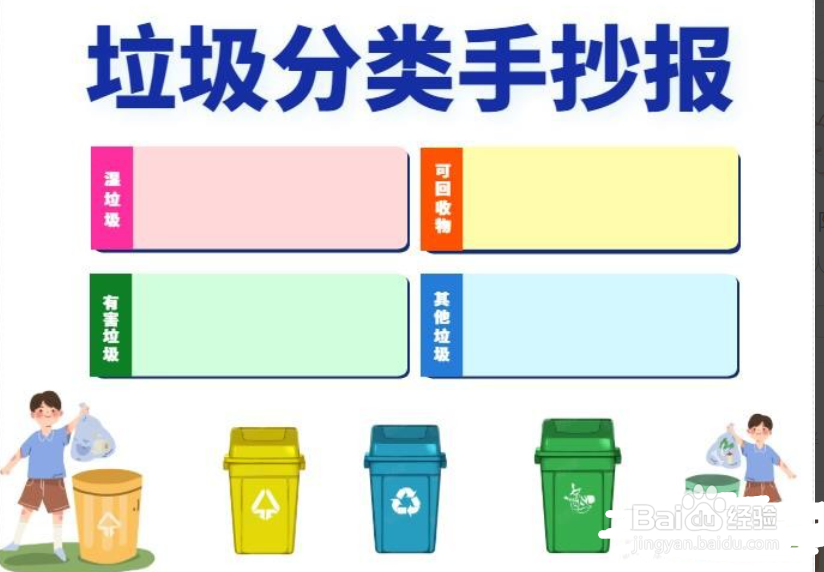 5、最后在边框内画出横线,在横线上写文字,这样一张垃圾分类手抄报就完成了