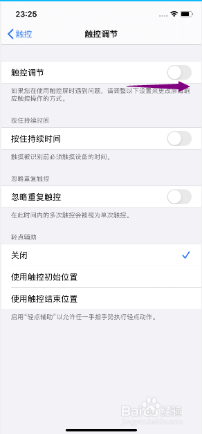6、滑动完成后如图所示,这样便开启了触控调节。