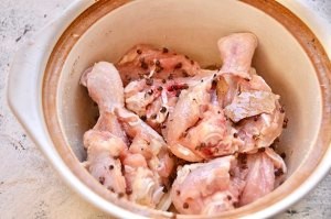 给处理好的鸡腿四周抹上白酒,然后再抹一层炒过的盐,这样就可以封起来腌渍了。