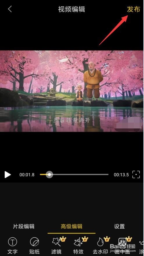 6、最后点击“确定”按钮即可完成视频编辑主界面。点击“发布”按钮。