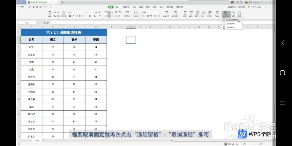 2、如果需要取消冻结,如图,点击【取消冻结窗格】