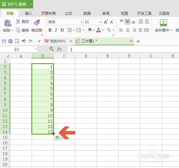 2、拖动时会显示填充数字,至合适值时松开鼠标左键即完成序号输入。