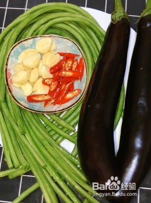 7、炒香以后放入蚝油、生抽、老抽、少许清水、盐、鸡精、白糖、再放入豆角和茄子翻炒一下来点水淀粉勾芡即可出锅