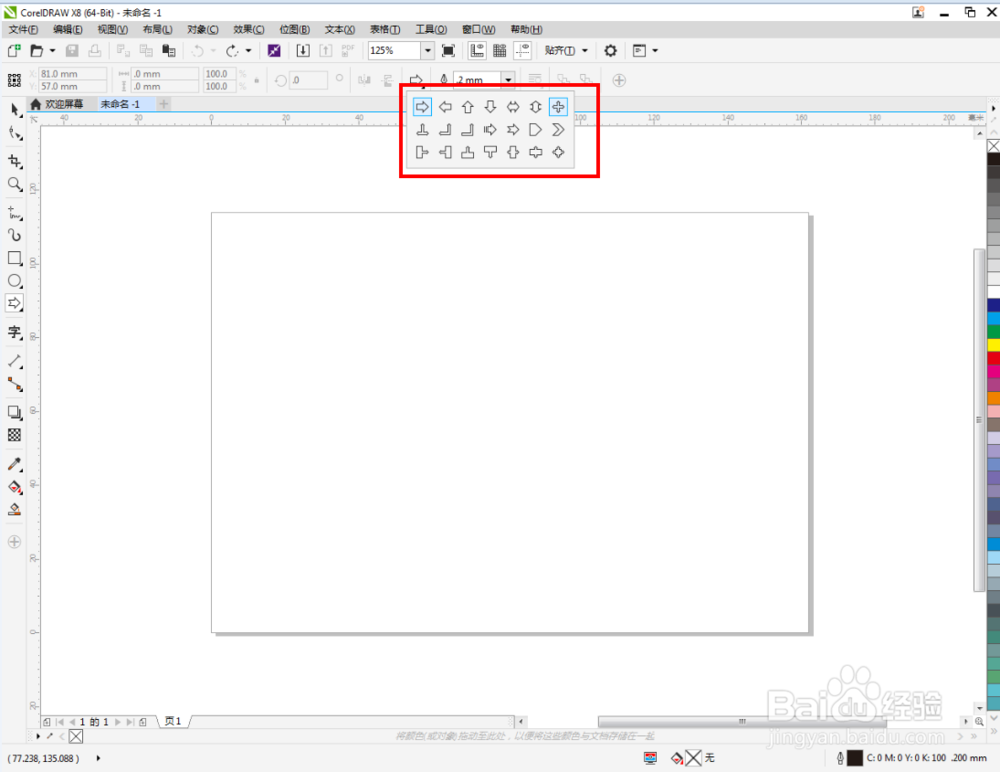 1、打开CorelDRAW X8 软件,新建一个cdr文档;