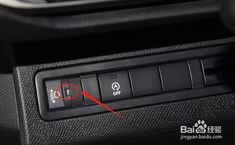 4、把车灯高度档位调到“1”档,这个档位的灯光高度相对降低一个档位。