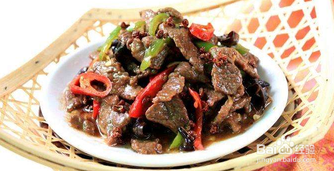 5、投入木耳,加适量水煸炒至牛肉熟透,放小菠菜煸炒入味,点入味精推匀即成。